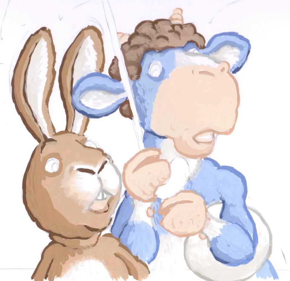 So here's the first layers of colours for Hugo and Billy. I'm already beginning to indicate the light and shade but I'm not concerned with finesse at this point: