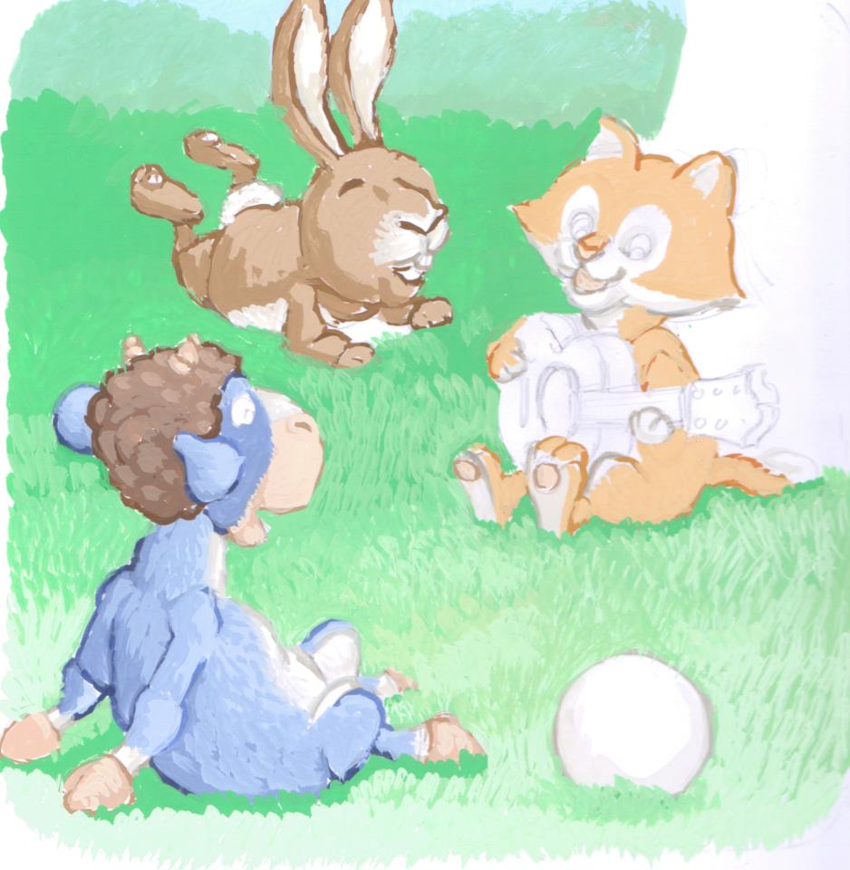 Once the characters are blocked in I do the same for the backgrounds. Before going into more detail I get every picture to this level.
